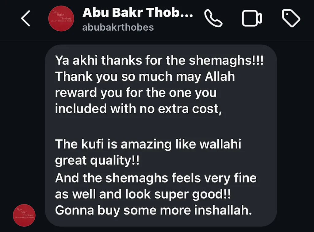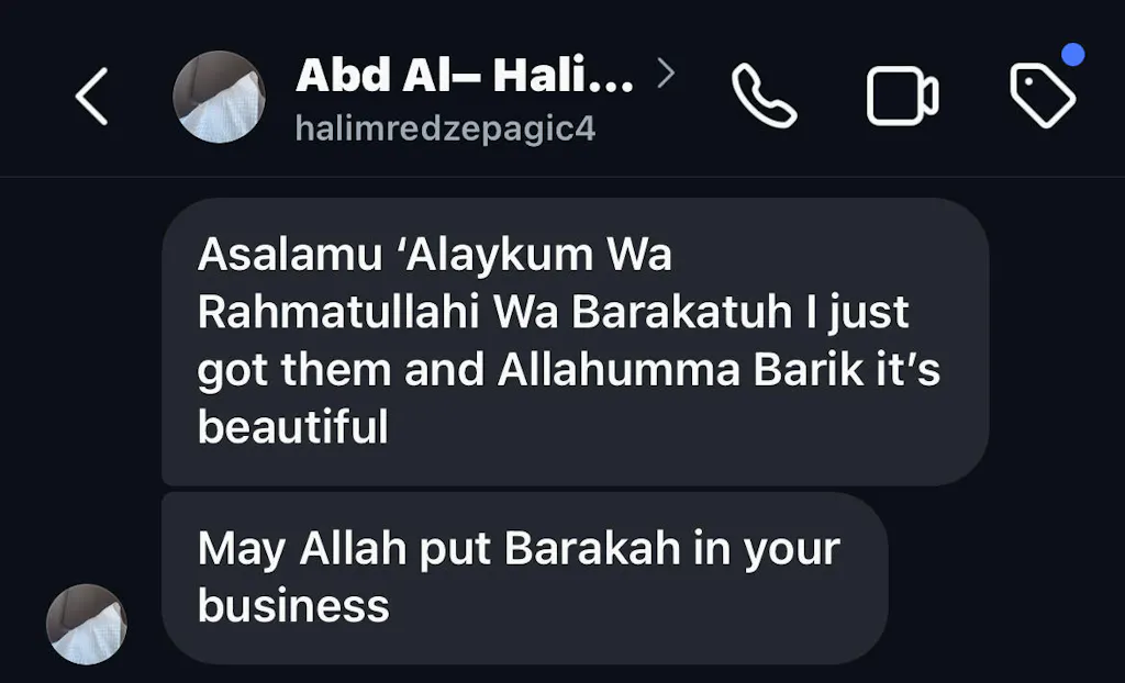 🧾 Over 3,000 orders made and hundreds of positive reviews from brothers across the UK and beyond. All available to see on our Instagram — alhamdulillāh.